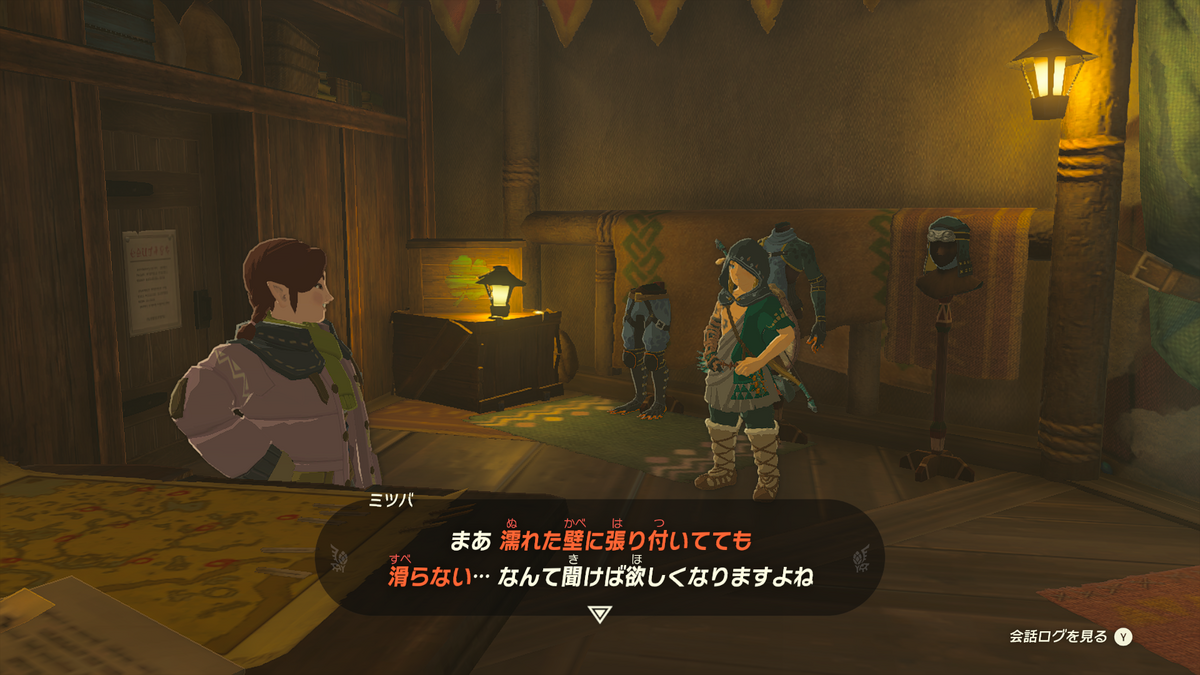 前作って雨のときにクライムできなかったじゃないですか。それに対する回答がちゃんと盛り込まれています。セリフ回しも BotW 既プレイユーザーに当てた感じがしますwwwww